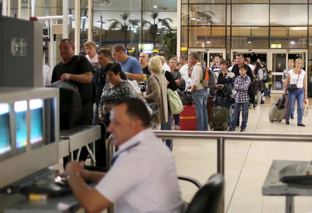 Khách du lịch Nga ở Ai Cập bắt đầu về nước tại sân bay Sharm el-Sheikh, Ai Cập hôm 6-11.(Ảnh: Reuters)