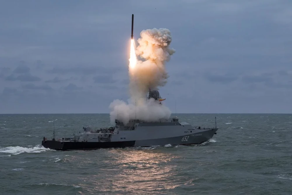 Tàu hộ vệ tên lửa lớp Buyan-M Grad Sviyazhsk của Nga phóng tên lửa hành trình Kalibr trong cuộc tập trận ở biển Caspi tháng 10-2017. Ảnh: Newsweek
