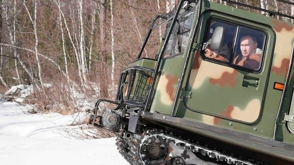 Cả hai di chuyển bằng một chiếc xe ôtô địa hình, ông Putin cầm lái còn Bộ trưởng Shoigu ngồi trên ghế dành cho khách.