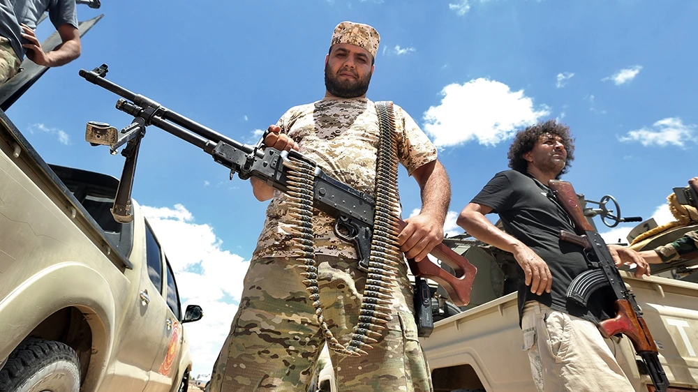 Lực lượng chính phủ Tripoli bảo vệ khu vực Abu Qurain, nằm giữa thủ đô Tripoli và TP Benghazi. Ảnh: Mahmud Turkia/AFP