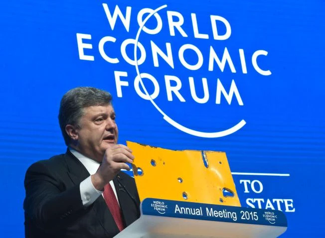 Tổng thống Poroshenko giơ cao mảnh vỡ xe buýt tại diễn đàn kinh tế Davos