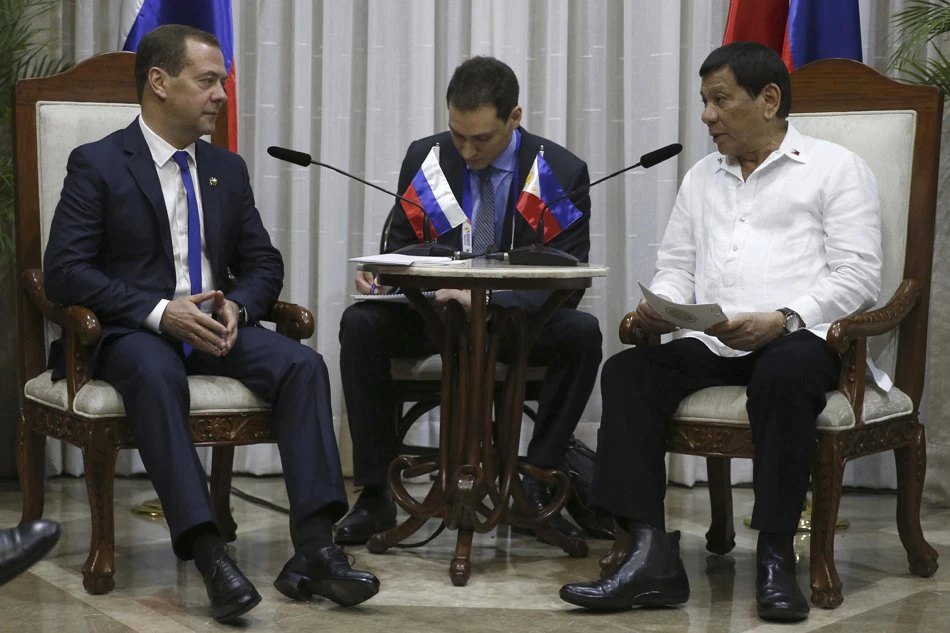 Thủ tướng Nga Dmitry Medvedev tại cuộc họp với Tổng thống Philippines Rodrigo Duterte cho biết Moscow sẽ tiếp tục cung cấp vũ khí cho Manila để tăng sức lực trong cuộc chiến chống khủng bố, hãng tin Itar Tass ngày 13-11 cho biết.