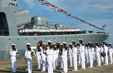 Tàu hải quân Nga ghé Trạm Giang ngày 12-9. Ảnh: THX