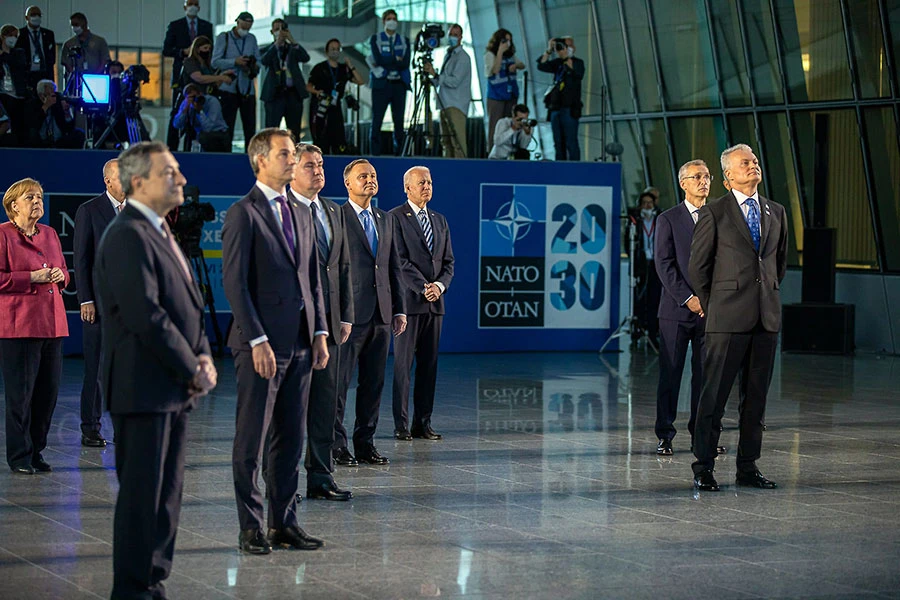 Tổng thống Mỹ Joe Biden (giữa) cùng các lãnh đạo khác của khối NATO