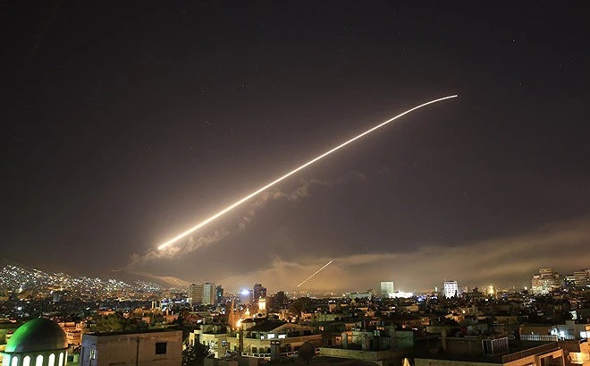 Đợt không kích của Mỹ, Anh, Pháp vào Syria hồi tháng 4-2018. Ảnh: Reuters