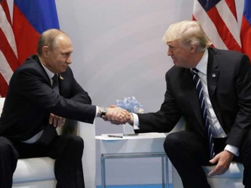Tổng thống Nga Vladimir Putin (trái) lần đầu gặp người đồng cấp Mỹ Donald Trump tại hội nghị thượng đỉnh G20 ở Đức hồi tháng 7. Ảnh: AP