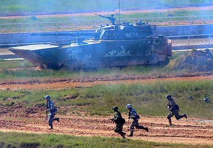 Hải quân Nga và Trung Quốc tham gia cuộc tập trận “Phối hợp hàng hải 2016” tại Trạm Giang (Quảng Đông). Ảnh: AP