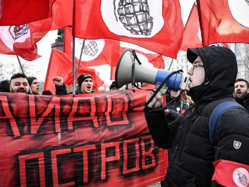 Biểu tình ở Moscow yêu cầu chính phủ Nga ngừng đàm phán về quần đảo Nam Kuril mà Nhật Bản gọi là lãnh thổ phía Bắc. Nguồn: CNN