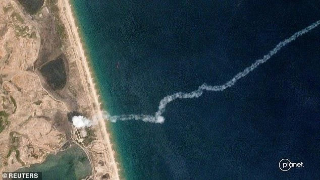 Ảnh vệ tinh bắt được khoảnh khắc vệt khói của tên lửa được Triều Tiên phóng đi. Ảnh: REUTERS