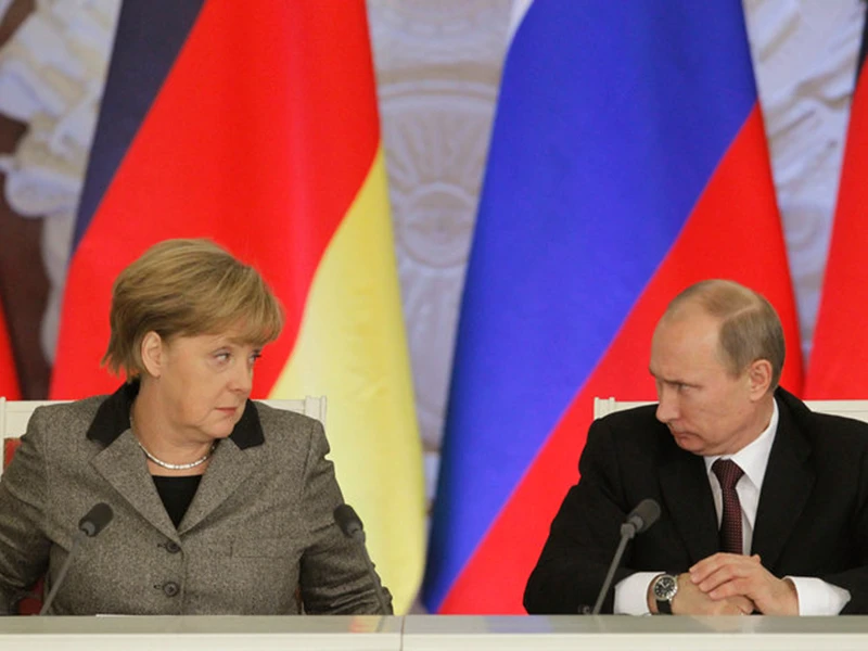 Tổng thống Putin (phải) đã có cuộc điện đàm với Thủ tướng Đức Merkel về tình hình Ukraine. Ảnh minh họa: REUTERS
