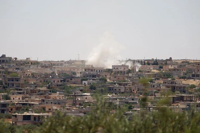Một thị trấn ở tỉnh Idlib được cho là bị quân đội chính phủ Syria tấn công hôm 21-6. Ảnh: AFP
