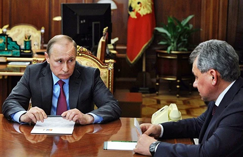 Ngày 14-3, Tổng thống Putin chỉ đạo cho Bộ trưởng Quốc phòng Sergey Shoygu tổ chức rút quân. Ảnh: GETTY IMAGES