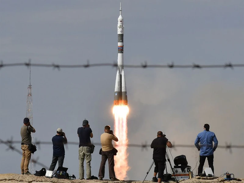Tàu vũ trụ Soyuz MS-09 (Nga) cùng các thành viên chuyến thám hiểm 56/57 thuộc trạm ISS khởi hành ngày 6-6. Ảnh: BLOOMBERG