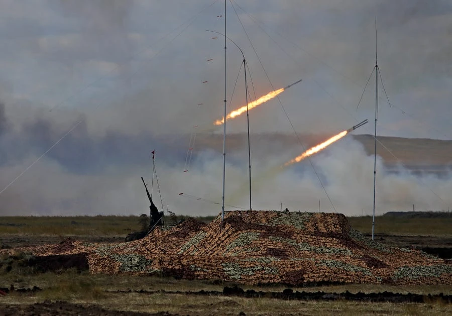 Hai tên lửa được phóng đi trong cuộc tập trận của Nga tại Đông Siberia năm 2018. Ảnh: AP