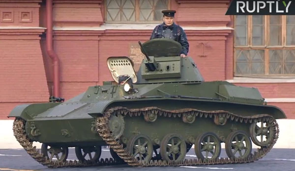 Một xe tăng có từ thời Thế chiến II tham gia lễ diễu binh. Ảnh: RT