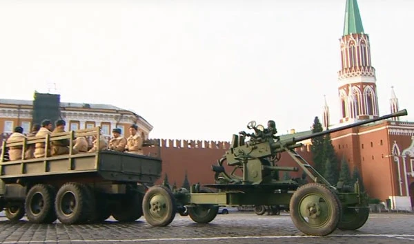 Được biết cuộc duyệt binh năm 1941 chỉ kéo dài hơn 20 phút nhưng đã đi vào lịch sử nước Nga mãi mãi. Cuộc duyệt binh năm đó với sự tham gia của khoảng 28.000 người, được tổ chức nhằm kỷ niệm 24 năm Cách mạng Tháng Mười và cũng đánh dấu ngày bắt đầu cuộc chiến tranh Vệ quốc vĩ đại (1941-1945) của nhân dân Liên Xô trước kia, nay là Liên bang Nga. Ngay sau cuộc duyệt binh, các chiến sĩ Hồng quân đã từ Quảng trường Đỏ tiến thẳng ra mặt trận để bảo vệ thủ đô Moskva.