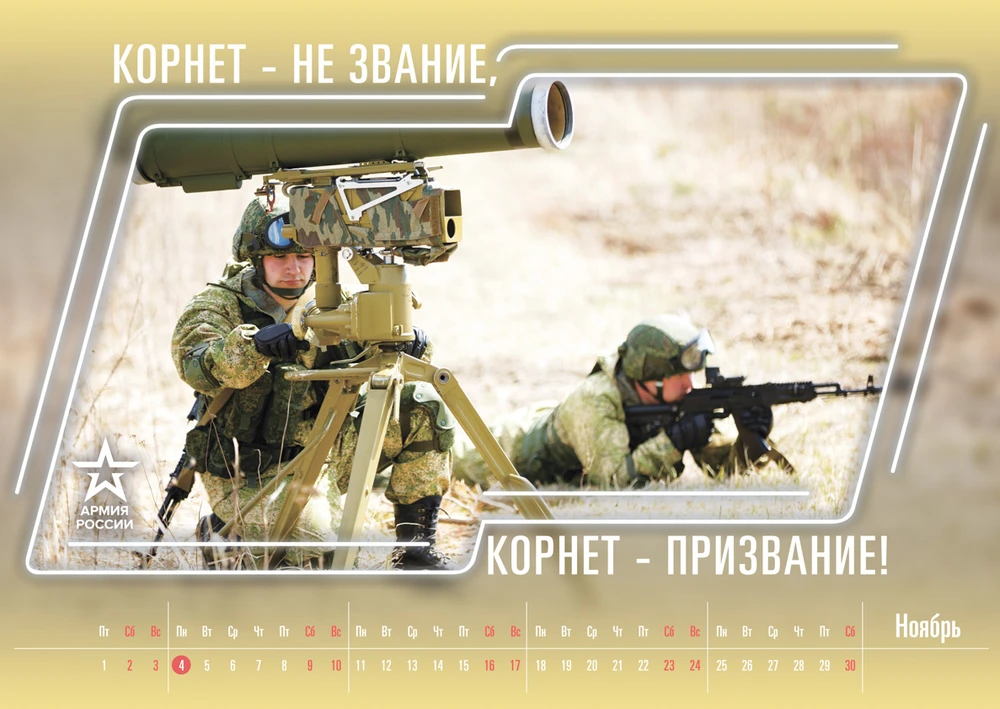 Mỗi tháng trong bộ lịch là hình ảnh về khí tài và quân nhân Nga kèm theo bình luận hài hước, như: "Các điệp viên lưu ý, các bạn thậm chí có thể tìm ra vũ khí bí mật của điện Kremlin là gì".