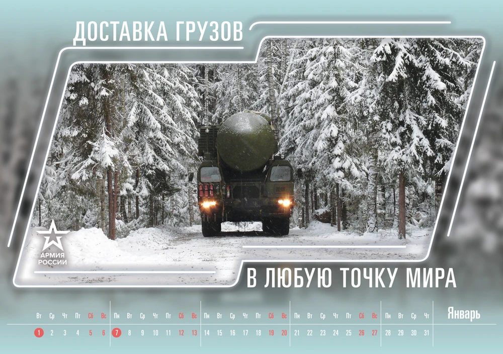 Tháng đầu tiên của năm 2019 là hình ảnh về bệ phóng di động được trang bị tên lửa đạn đạo liên lục địa Topol-M. Ảnh: RT