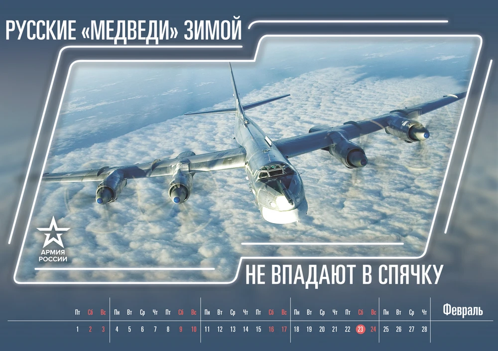 Tháng này được minh họa bằng hình ảnh một máy bay ném bom chiến lược Tu-95, hay còn gọi là “Gấu” Tu-95 theo định danh của Tổ chức Hiệp ước Bắc Đại Tây Dương (NATO). Ảnh: RT