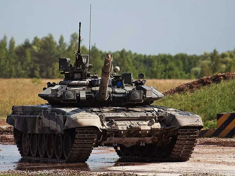 Lầu Năm Góc từng cáo buộc Nga đưa xe tăng T-90 đến đóng quân tại sân bay Syria gần Latakia. Ảnh: PRESS TV
