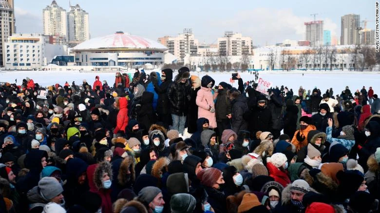 Người ủng hộ ông Navalny tham gia biểu tình ở Yekaterinburg, Nga. Ảnh: CNN