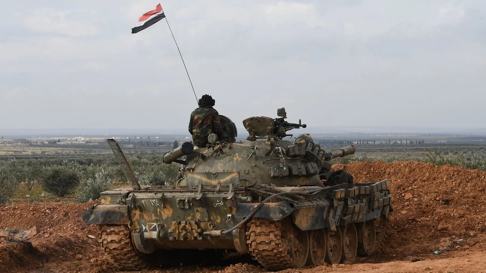 Một binh sĩ của chính phủ Syria ngồi trên xe tăng. Ảnh: SPUTNIK