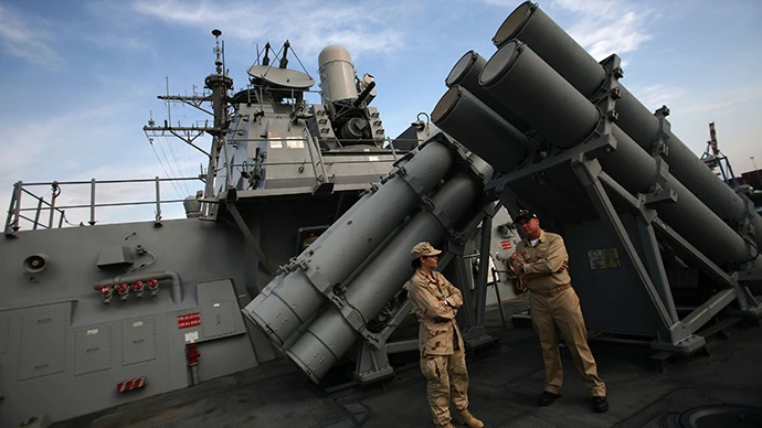 Tàu USS Higgin với hệ thống phòng thủ đánh chặn (ảnh của Reuter/phóng viên Atef Safadi)