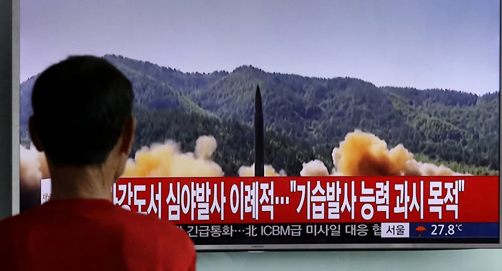 Một người đàn ông Hàn Quốc xem bản tin Triều Tiên phóng tên lửa. Ảnh: AP