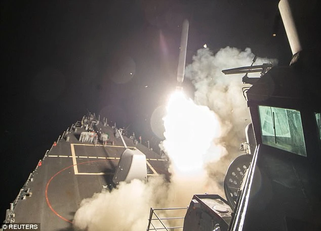 Tên lửa Tomahawk của Mỹ được phóng từ tàu sân bay ở Địa Trung Hải nhằm vào căn cứ Syria rạng sáng 7-4. Ảnh: Reuters