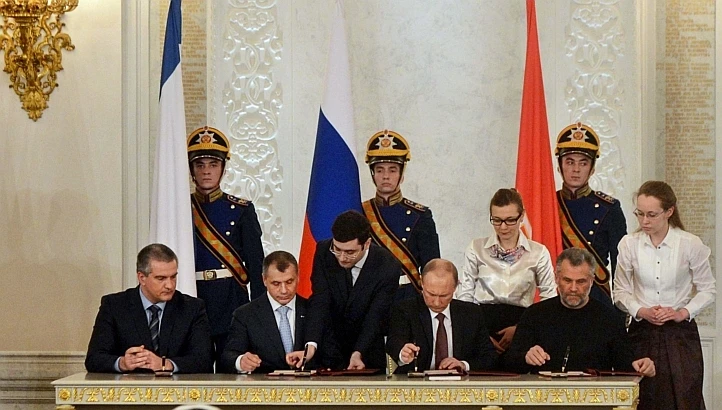 Ngày 18-3, tại điện Kremlin, Tổng thống Nga Putin đã ký hiệp định sáp nhập nước Cộng hòa Crimea và TP Sevastopol vào Liên bang Nga. Về phía Crimea và Sevastopol, cùng ký vào hiệp định có Thủ tướng Sergey Aksyonov, Chủ tịch Quốc hội Vladimir Konstantinov và Thị trưởng Alexei Chaly của Sevastopol.