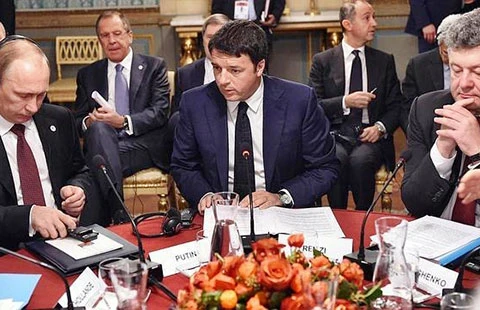 Theo hãng tin RIA Novosti (Nga), bữa ăn sáng làm việc kéo dài 90 phút do Thủ tướng Matteo Renzi chủ trì tổ chức. Tại bàn tròn, Thủ tướng Matteo Renzi ngồi giữa Tổng thống Putin và Tổng thống Poroshenko (ảnh). Ngồi xung quanh là các nhà lãnh đạo châu Âu.