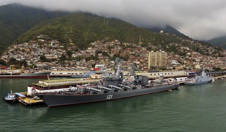 Tàu chống tàu ngầm Nga Moskva được nhìn thấy trong cảng La Guaira, khoảng 19 dặm về phía bắc của Caracas, Venezuela vào ngày 27-8-2013. Ảnh: AFP