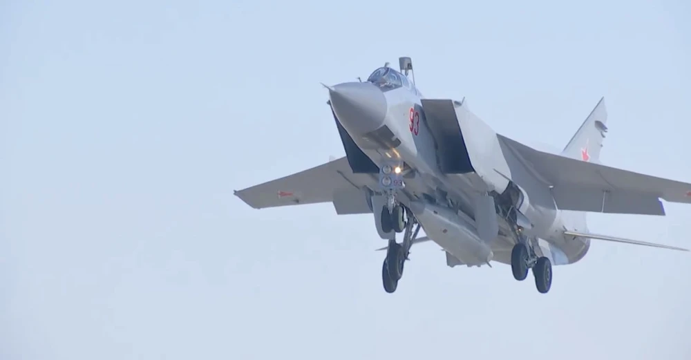 Tên lửa Kinzhal được mang bởi máy bay đánh chặn siêu thanh MiG-31K mà NATO gọi là “Chó săn cáo”.