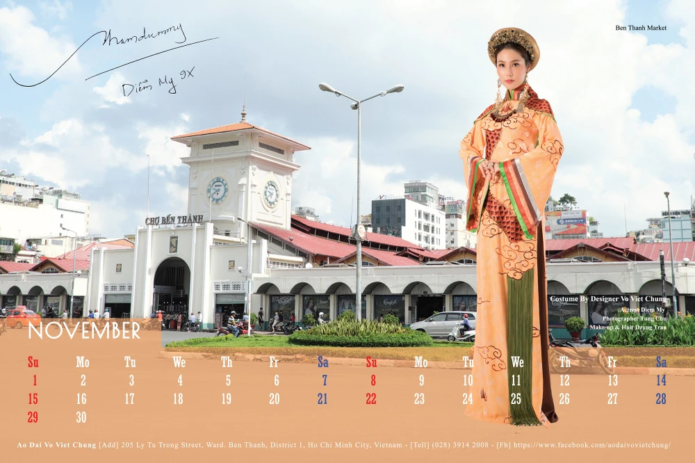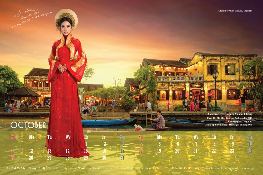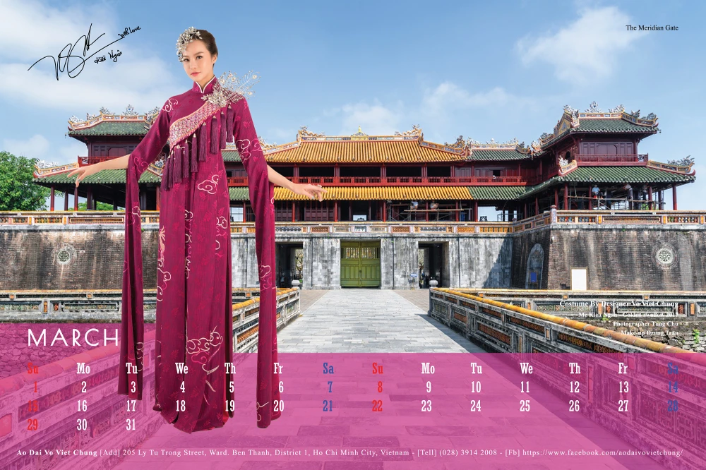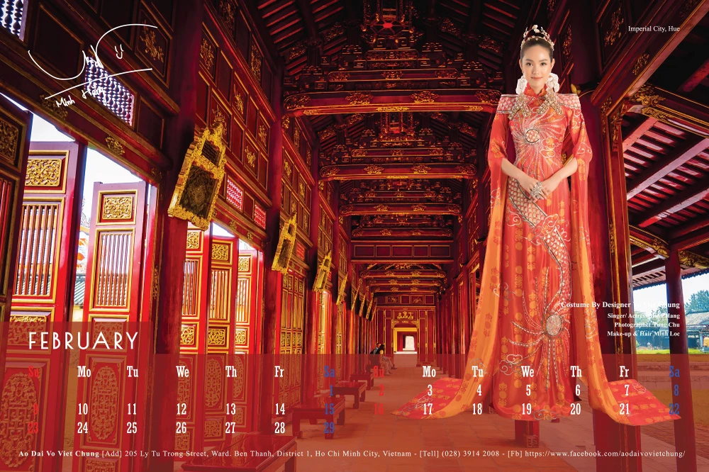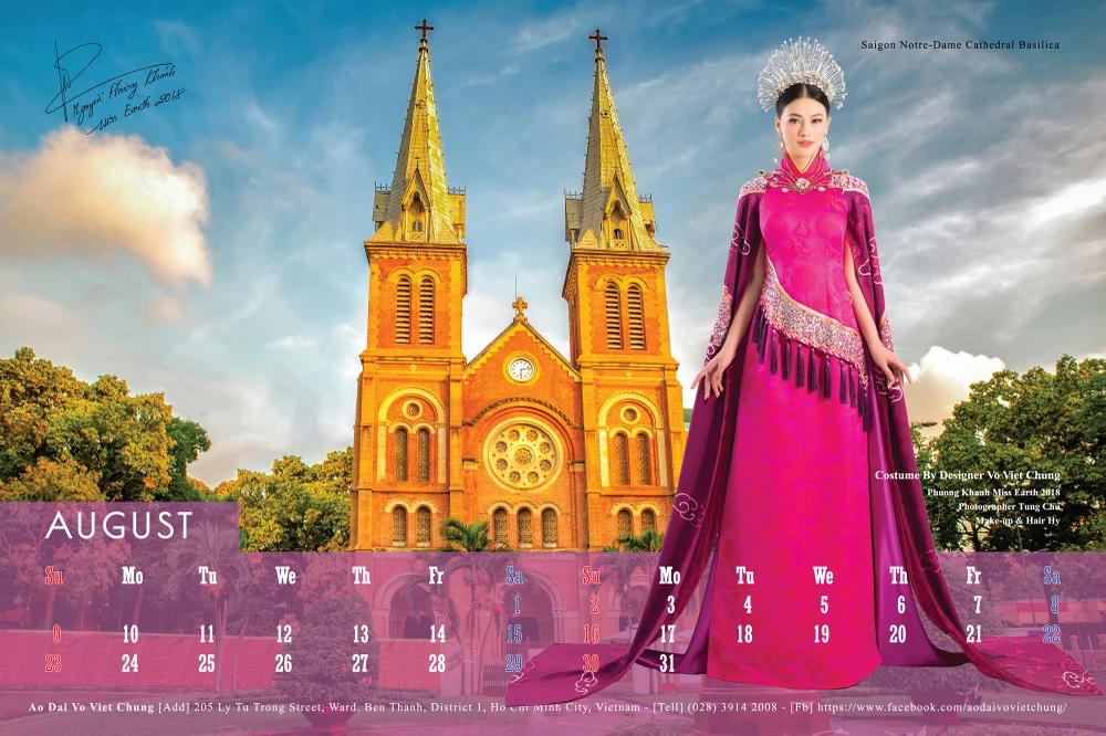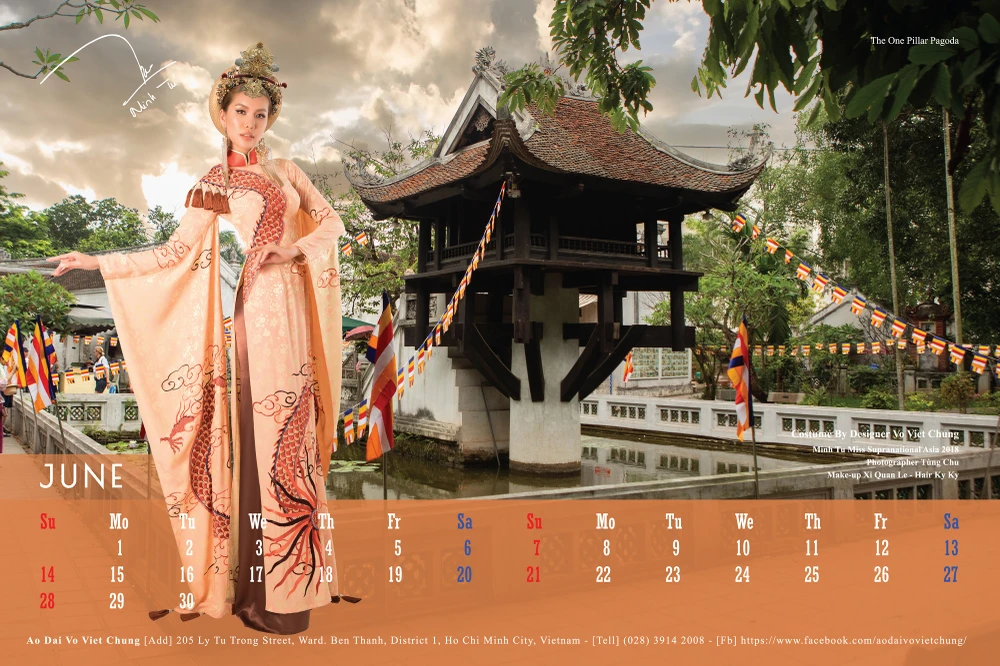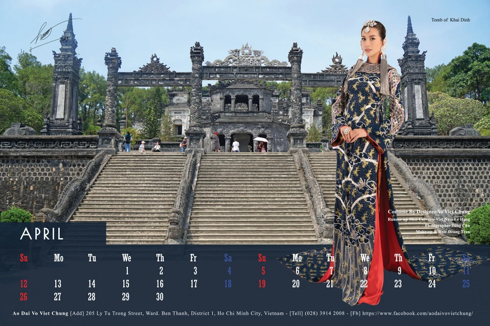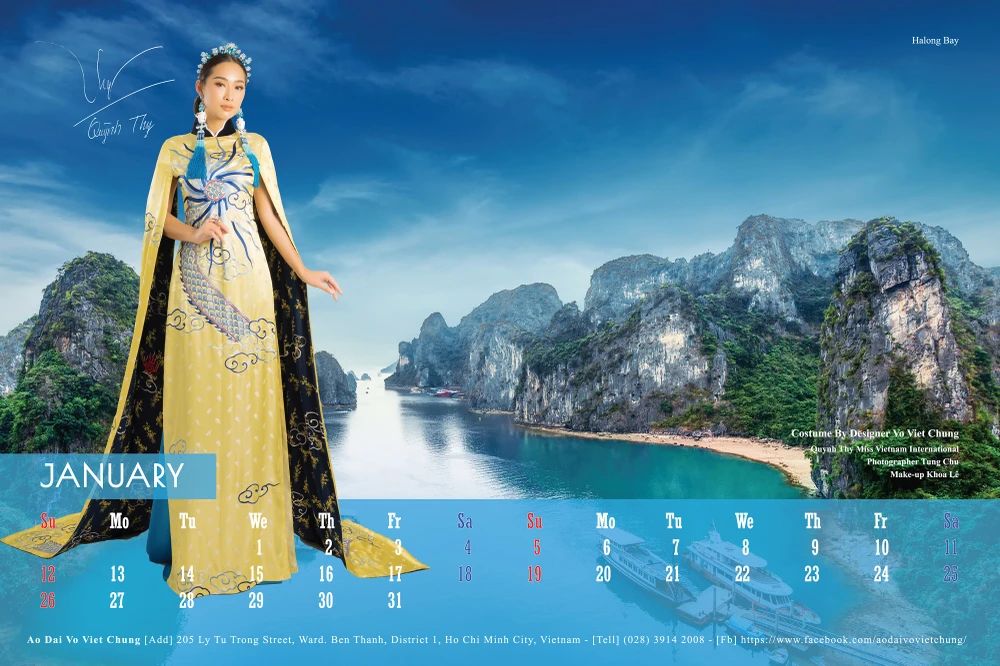 Toàn bộ 12 gương mặt mỹ nhân Việt từ hoa hậu, người mẫu, diễn viên: Quỳnh Thy, Minh Hằng, Kiều Ngân, Lệ Hằng, Thúy Vân, Minh Tú, Hoàng Yến, Phương Khánh, Nie H’Hen, Phan Thị Mơ, Diễm My, Trương Thị May có mặt trong bộ lịch 2020. Các người đẹp trong trang phục áo dài truyền thống nằm trong bộ sưu tập "Mây bay phương Nam" của nhà thiết kế Võ Việt Chung.