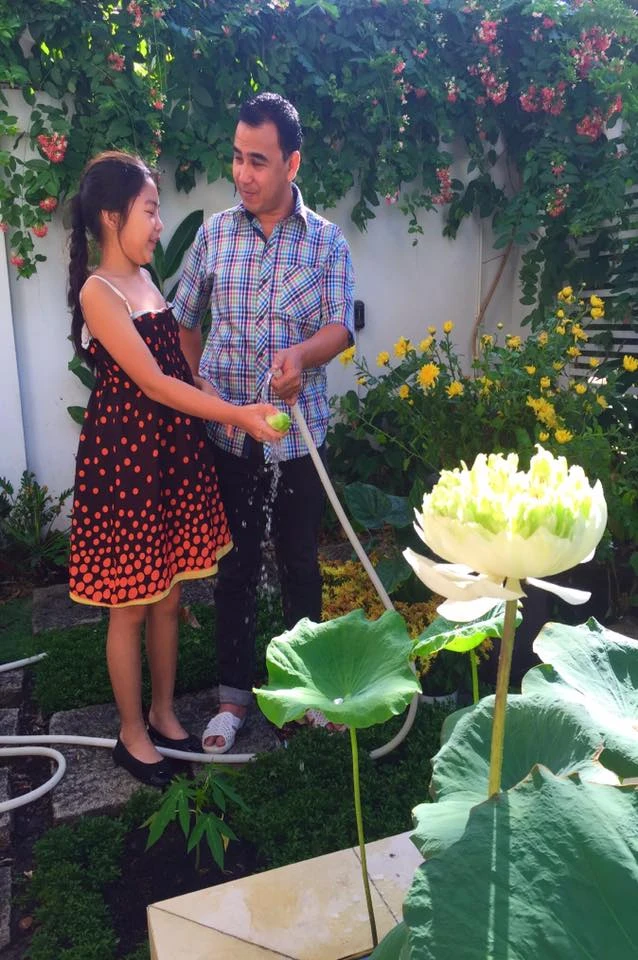 2 công chúa nhỏ của MC Quyền Linh vui mừng thu hoạch trái trong vườn nhà