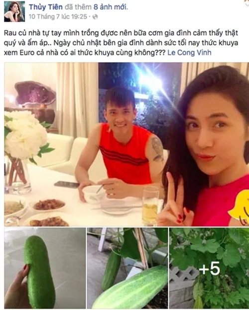 Vào những ngày không bận rộn với công việc, cả Công Vinh và Thủy Tiên đều dành thời gian chăm sóc vườn rau rồi sau đó cùng con gái quây quần bên bữa cơm gia đình với các món ăn được nấu từ các thực phẩm tại gia.