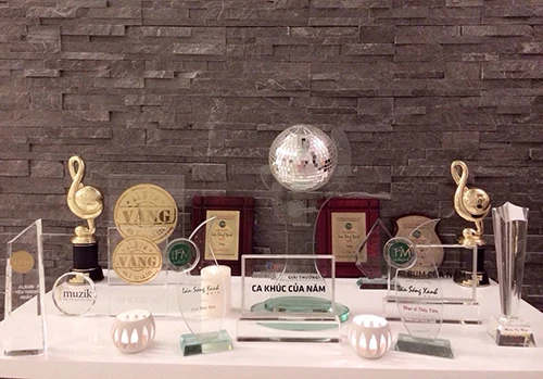 Góc trưng bày giải thưởng âm nhạc của Thủy Tiên.