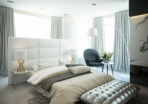 Phòng ngủ được trang hoàng khác nhau ở các tầng.
