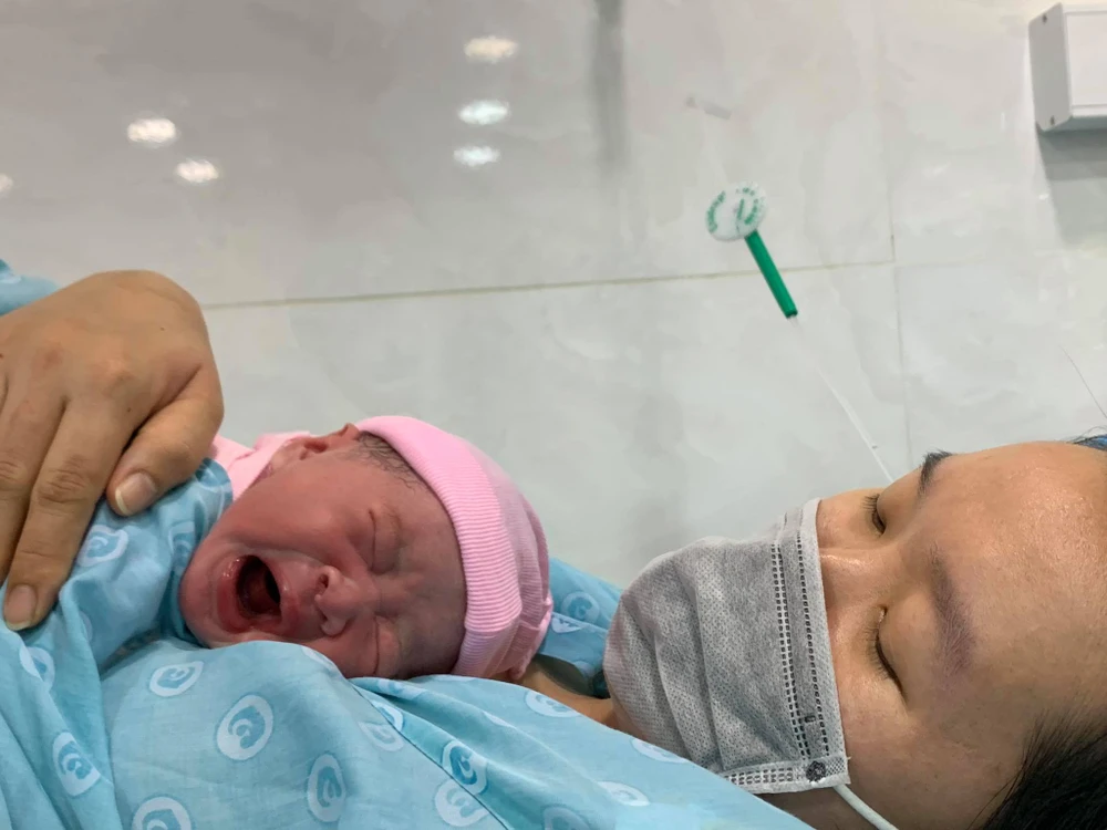 4 phút sau khi năm mới sang, bé gái, con của sản phụ Nhịnh Thị Kim Anh (ngụ quận 11) cũng cất tiếng khóc chào đời.