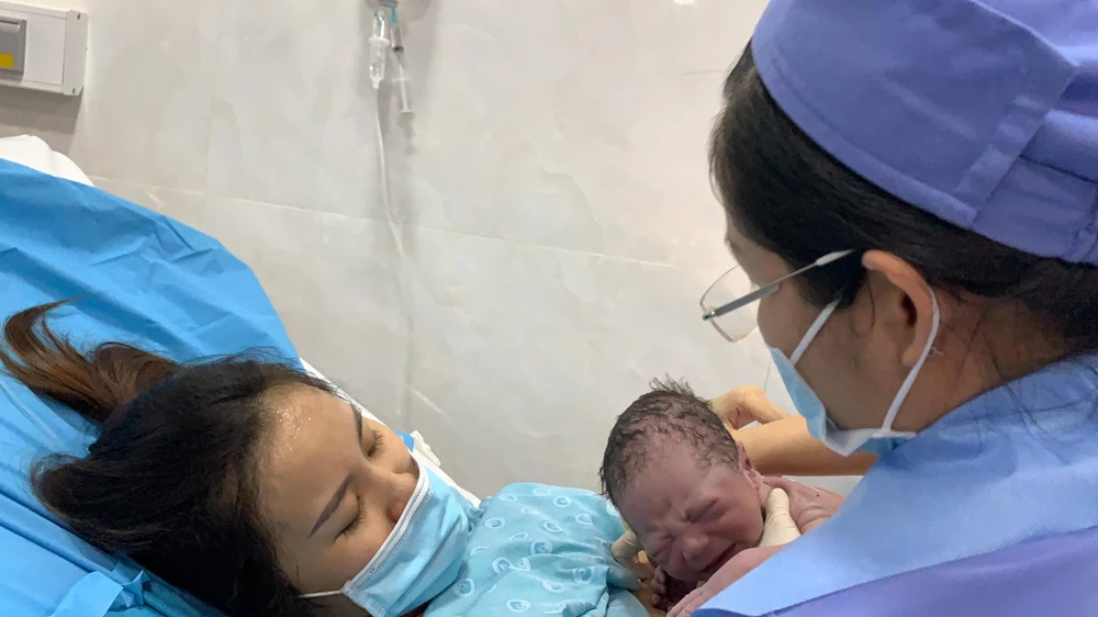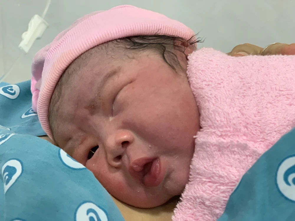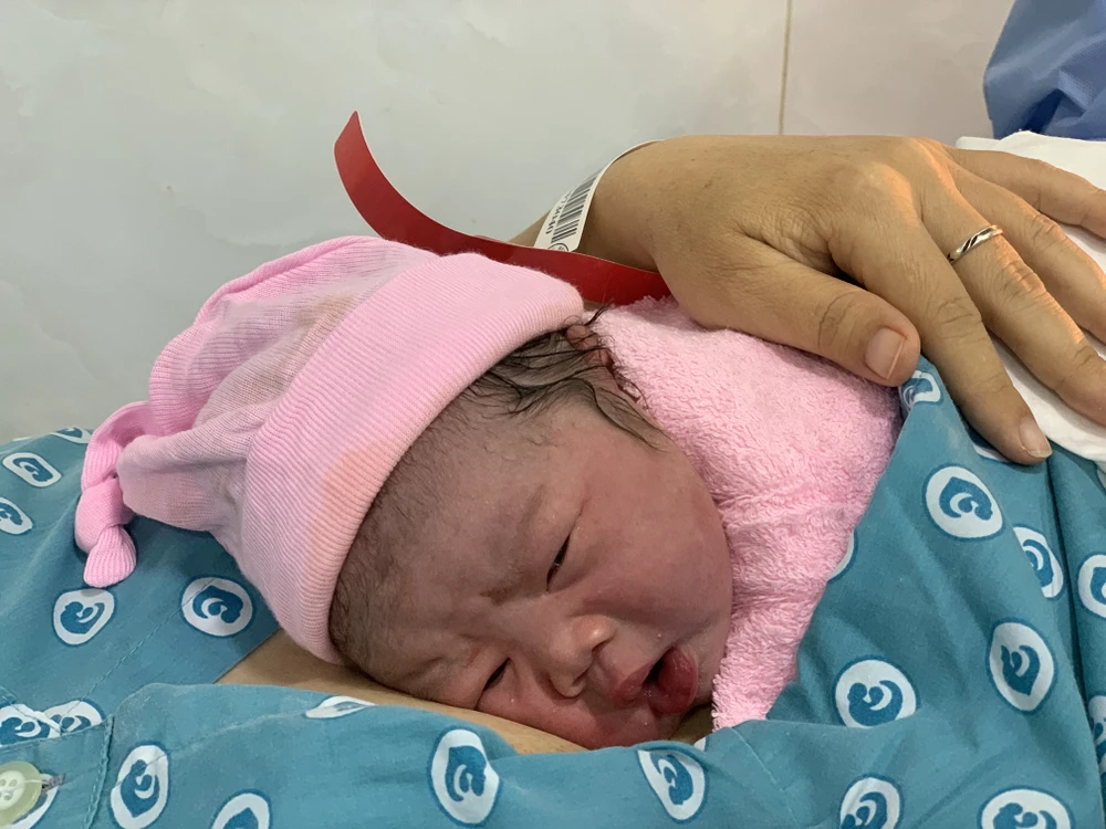 Tiếp theo là bé gái sinh vào lúc 0 giờ 2 phút, con của sản phụ Trần Thị Thuỳ Uyên (26 tuổi, quê Quảng Nam).
