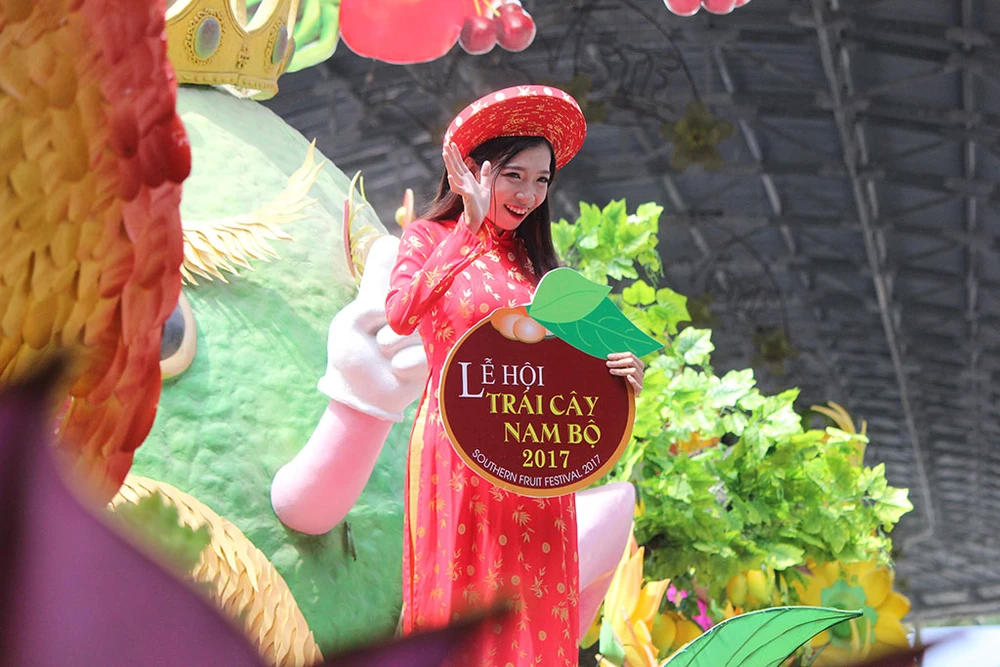 Buổi trình diễn thời trang của nhà thiết kế trẻ Tín Thái với chủ đề "Việt Nam - Vẻ đẹp bất tận" nằm trong khuôn khổ Lễ hội Trái cây Nam bộ 2017 tại Khu du lịch Suối Tiên.