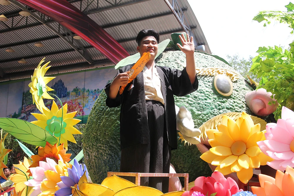 Lễ diễu hành đi qua các tuyến phố trong khu du lịch Suối Tiên khiến khách tham quan vô cùng thích thú.