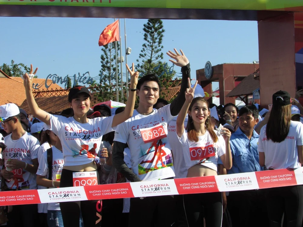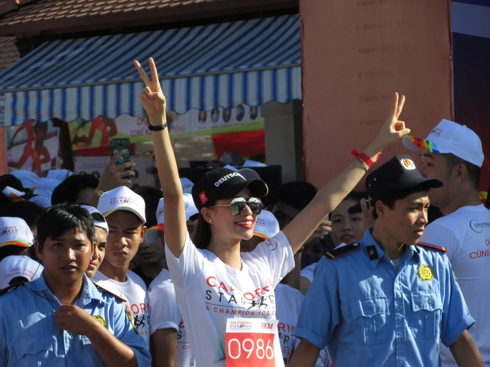 Các sao tỏ ra vô cùng phấn khích khi bắt đầu xuất phát đường chạy 5 km cùng hàng ngàn bạn trẻ Cần Thơ