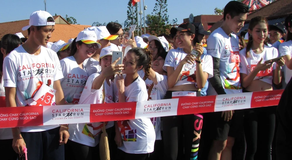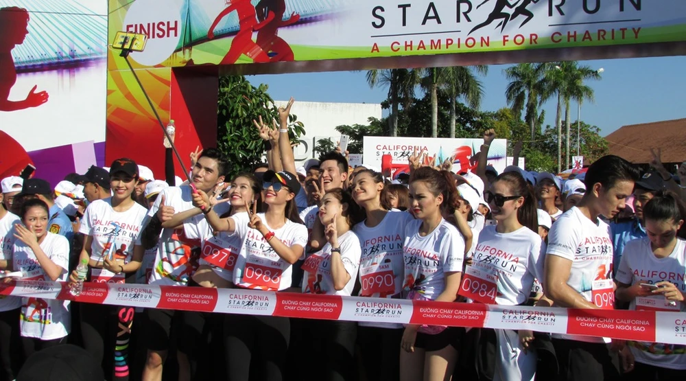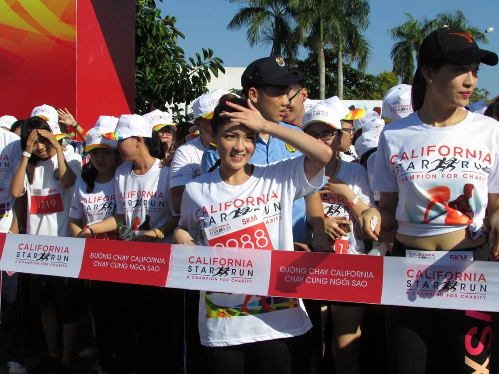 Khoảng 8 giờ, trời đã nắng gắt, các vận động viên tập trung tại vạch xuất phát. Dù đã được giao lưu với người nổi tiếng trước đó trên sân khấu nhưng nhiều bạn trẻ vẫn tỏ ra khá phấn khích khi được gặp thần tượng của mình. Dưới cái nắng như đổ lửa, dàn sao Việt vẫn tỏ ra rất hào hứng bước vào đường chạy.