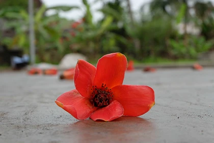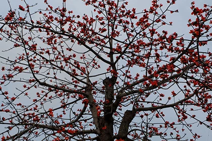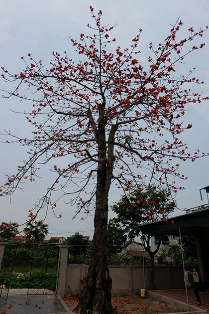 Cứ mỗi dịp cuối xuân, đầu hè, cây gạo rụng sạch lá và thay vào đó là một trời hoa đỏ rực. Nhiều người dân đã thích thú đến chụp hình, quay phim.