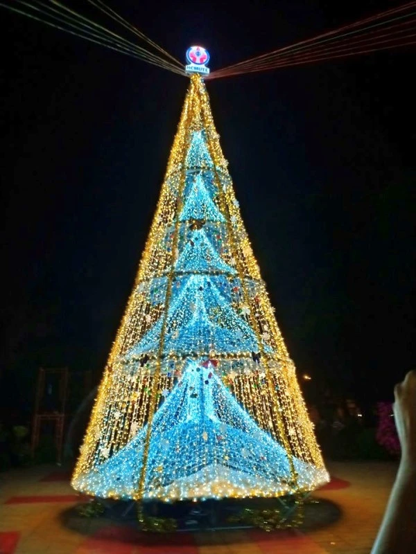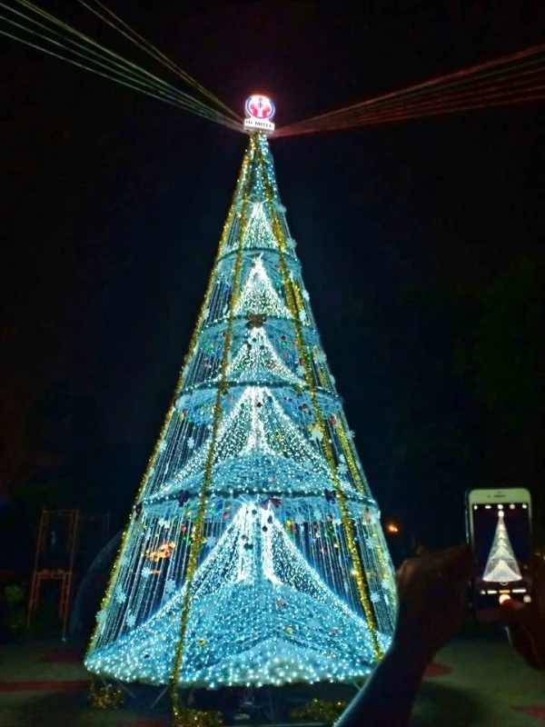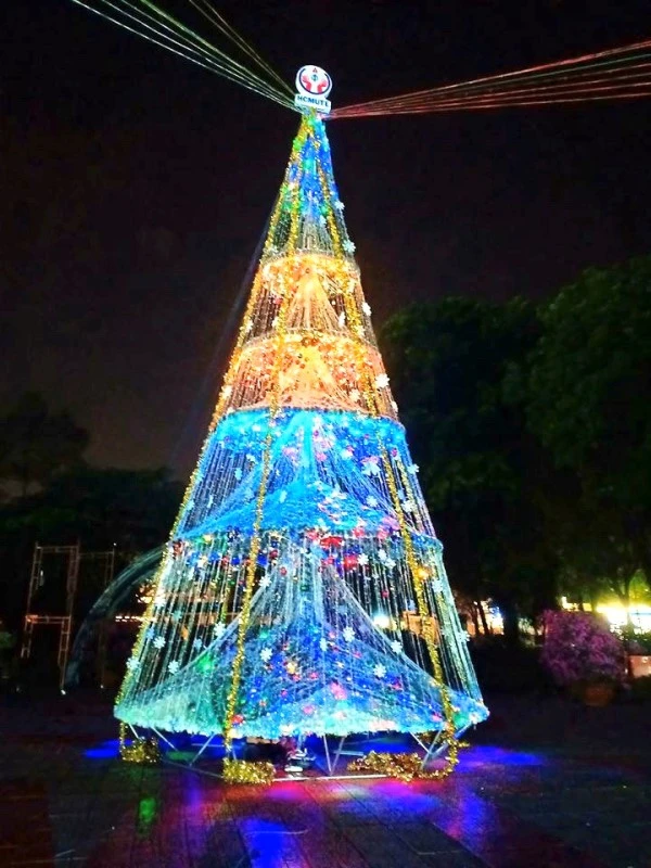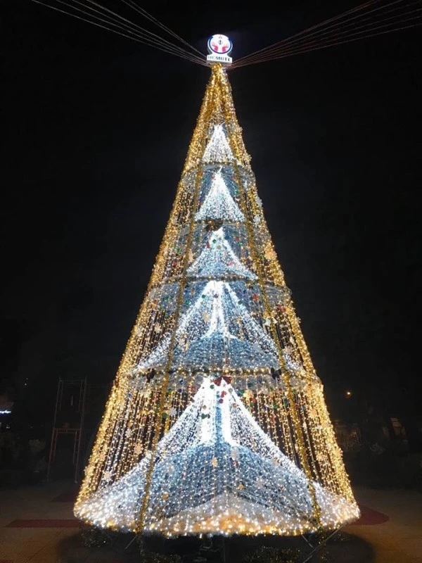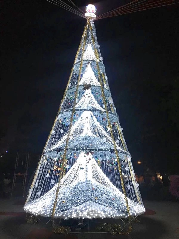 Với chiều cao 11 m, cây thông được xem là thông minh vì có hệ thống điều khiển 64 kênh, được lập trình nhiều phương án phát sáng đèn LED khác nhau, có thể thay đổi màu và cường độ ánh sáng theo nhạc, theo giờ.