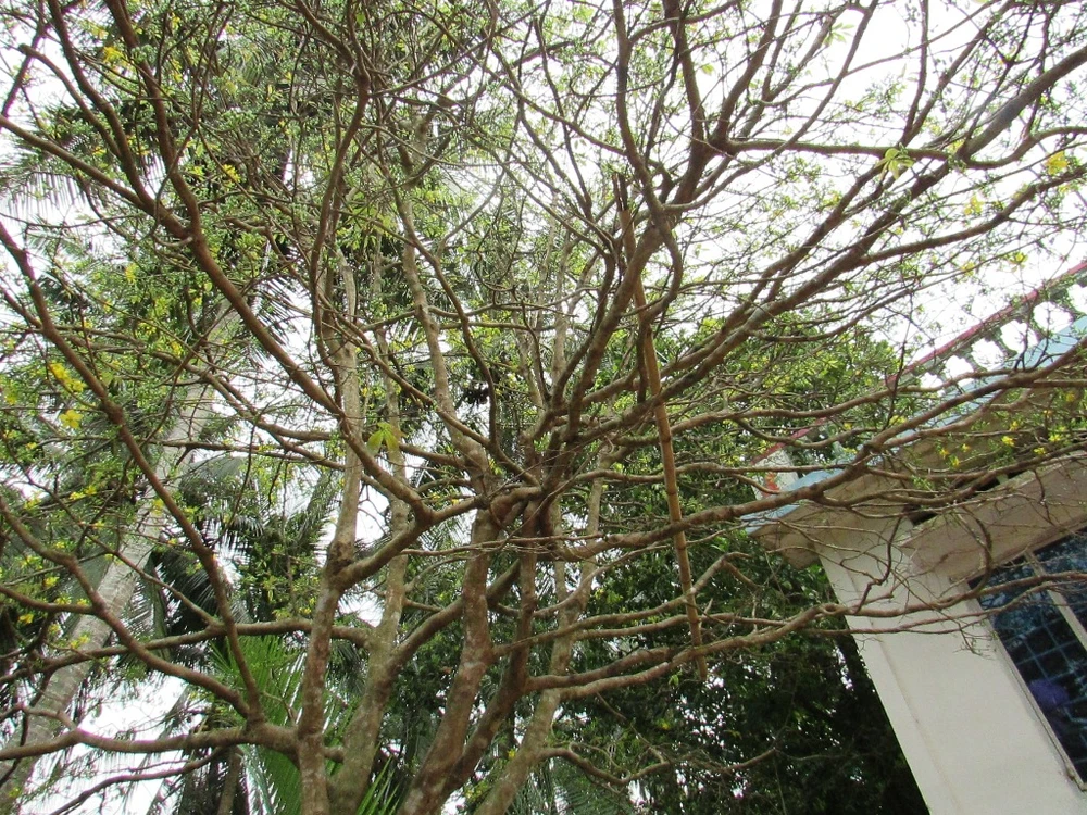 Tới gần sẽ thấy cây có những chùm nụ, hoa và lôc rất đẹp mắt.