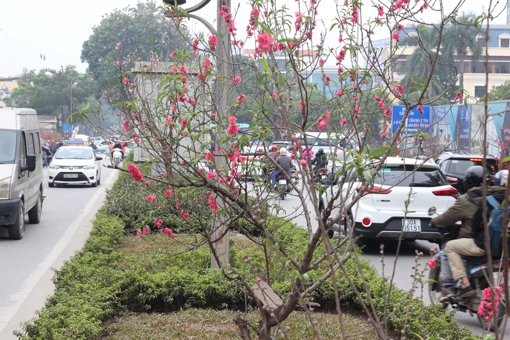 Ngắm đào tại nhà hoặc tại vườn đã thú vị, ngắm cây được trồng giữa đường lại còn thích thú hơn.