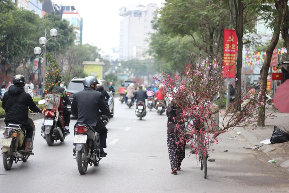 Đào chính là dấu hiệu rõ nhất khi Tết về, vì vậy, khi những cánh đào trên đường Lạc Long Quân hé nở cũng là lúc không khí Tết về đến thủ đô.
