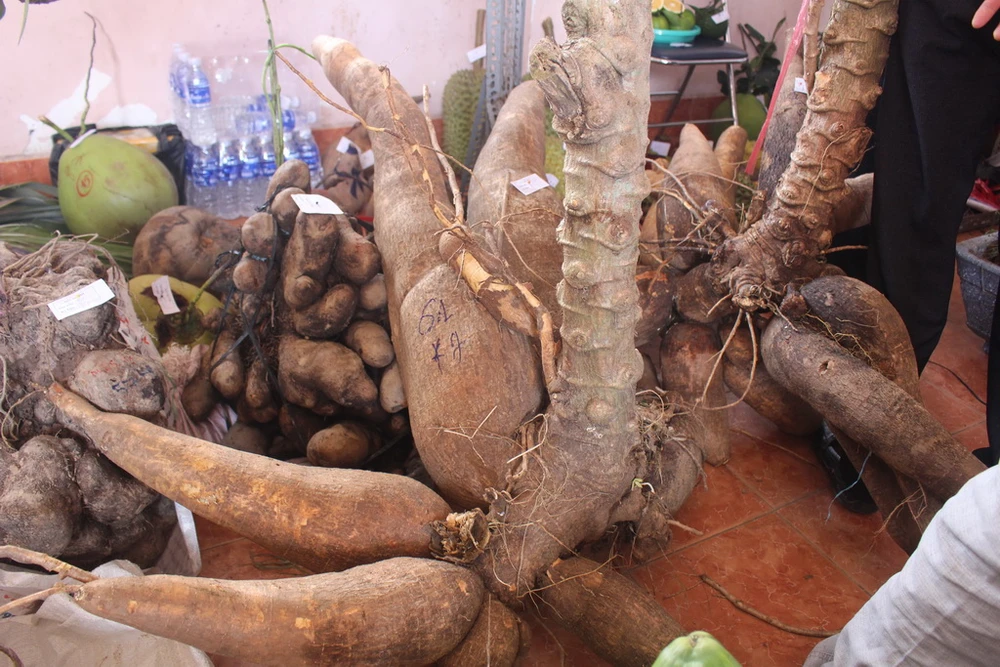 Trái mít nặng 34 kg, bụi mì 61 kg, buồng dừa 45 trái, cây dừa lạ, trái sầu riêng nặng 12 kg, buồng dừa 45 trái, trái bưởi da xanh nặng gần 4 kg, thơm đầu rồng, chùm trái sai, cam ruột vàng, trái mướp dài gần 2 m… được hội tụ tại cuộc thi đấu xảo sản vật độc lạ, thu hút được nhiều người hiếu kỳ đến xem. Đây là các sản phẩm cây, trái, củ, quả; to, dài, nặng, sai, lạ, hiếm mà nông dân có được trong quá trình sản xuất.